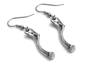 Sterling Silver Finger Bone Earrings, Phalanx Anatomy Jewelry